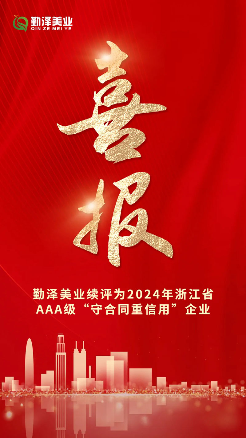 喜报 | 勤泽美业续评浙江省AAA级“守合同重信用”企业!