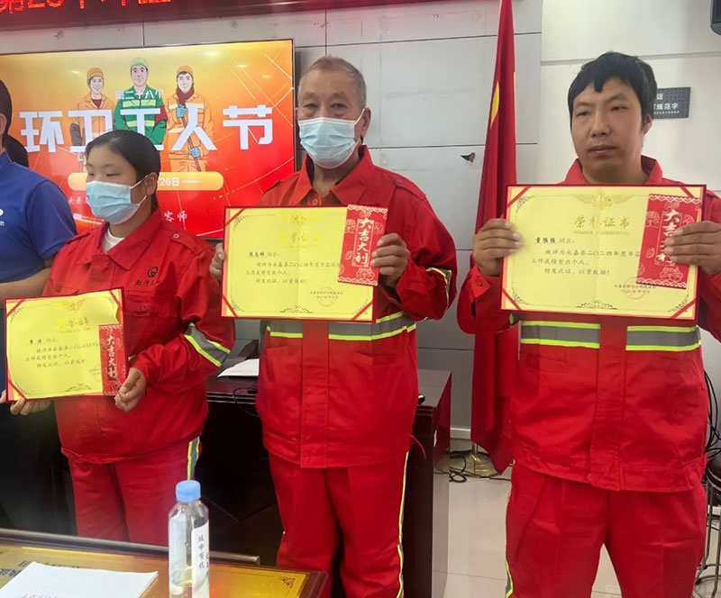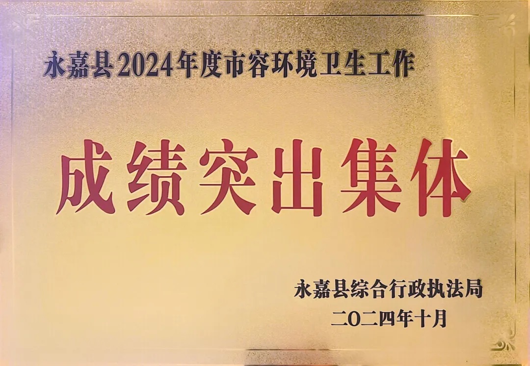 同时,公司董猛猛、段志雄、李佳等基层环卫工作者凭借其出色的工作表现,被授予“永嘉县市容环境卫生工作成绩突出个人”称号,他们用自己的双手擦亮了城市的每一个角落,用实际行动诠释了“城市美容师”的崇高使命。